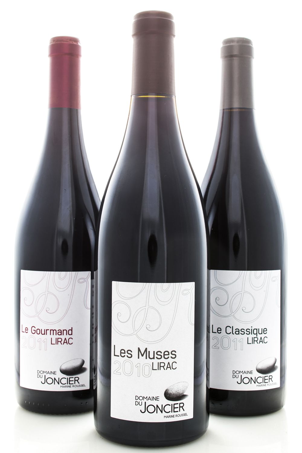 Domaine du Joncier producerar tre olika röda Liracviner, vilka alla tre finns med i CAV0018. Marine har en tydlig idé om vad hon vill skapa med de tre olika vinerna och tar hjälp av olika druvsammansättningar för att uppnå detta. Le Gourmand är Marines tolkning av drickvänlighet. Huvudsakligen från druvan grenache för att få en varm och saftig frukt med sammetslena tanniner. Le Classique är vinet som bäst representerar Domaine du Jonciers klassiska sida, eftersom det var ett vin i liknande stil som Marines far producerade under 20 år. Mer finess tack vare den relativt stora andelen syrah som också bidrar med kraft och stramhet. Les Muses är Marines stolthet. Hon skapade detta vin för första gången 2004 för att visa på storheten i Liracs terroir och potentialen i druvan mourvèdre. Vinet har fått mogna ett år längre på flaska än de andra två vinerna vilket har lockat fram lite mognadstoner i den stora, mörka mourvèdre-frukten. För oss är dessa tre viner helt perfekta till sommarens grillkvällar med sin söta frukt och strama örtighet. Le Gourmand behöver nödvändigtvis inte matsällskap men till både Le Classique och Les Muses ser vi till att det ligger prima kött på grillen och att vinerna fått ett par timmar på sig att vakna i karaff.
