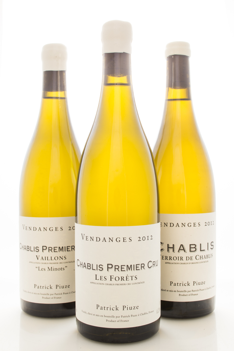 Årgång 2012 var utmanande för vinbönderna i Chablis. Några frostnätter i april gjorde att skörden redan från början såg ut att bli betydligt mindre än normalt. Inledningen av sommaren var blöt och kall och blomningen ojämn. Augusti var varm och helt torr vilket hjälpte till att koncentrera smaken i druvorna. Risken för regn var överhängande när det drog ihop sig till skörd under andra halvan av september. Patrick Piuze valde att trotsa regnet och plocka tidigt för att inte riskera att druvorna tappade den fina koncentrationen. Hans team plockade åtta av de 11 dagarna i regnkläder. Patrick använde för första gången en vertikal, mekanisk press till samtliga viner. Piuze viner från 2012 har hög syra som är perfekt inbäddad i koncentrerad frukt. Terroir de Chablis, från en vingård som ligger ett stenkast från Premier Cru Les Forêts, har perfekt balans för att drickas ung. Av de två Premier Cru-vinerna i CAV0021 är Vaillons ”Les Minots” det lite rikare vinet, med tropiska drag i frukten. Premier Cru Les Forêts är, som alltid, citrusdominerad och väldigt energifylld med en påtagligt mineralisk karaktär. Tack vare vinernas unikt krämiga textur är de väldigt användbara i matsammanhang. Alla tre vinerna är goda redan nu men vinner mycket på att karafferas och serveras i stora glaskupor. Terroir de Chablis passar utmärkt till räkor eller musslor, till Vaillons ”Les Minots” väljer vi en matig fisksort som marulk eller piggvar, som serveras med vitvinssås. Les Forêts är det självklara valet till säsongens första hummer.