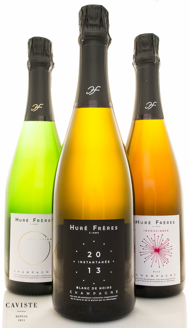 CAV0122 innehåller tre av bröderna Hurés viner. Startpunkten är den årgångslösa Invitation (2 flaskor). Basen i denna utgåva är vin från 2016 som kompletterats med 40% reservvin. Reservvinet kommer från en tank som startats 1995 och som kontinuerligt fylls på med senaste årgången efter att man tappat av det man behöver till årets produktion. Med Invitation vill man skapa ett vin som är inbjudande, uppfriskande och okomplicerat och där druvsammansättningen speglar egendomens druvproportioner i vingårdarna (20% chardonnay/40% pinot noir/40% pinot meunier). Huré Frères roséchampagne heter Insouciance (2 flaskor), även denna utan årgång. Basvin från 2017 i kombination med lite kortare tid på jästfällningen ger ett fruktig och tillgänglig uttryck med mycket fin balans. Toppvinet i CAV0122 är årgångsvinet Instantanée 2013 (2 flaskor), en blanc de noirs, gjord på endast blå druvor, från byarna Ludes och Rilly-la-Montagne. Årgång 2013 har skrivits upp som en mycket fin årgång i Champagne. En ovanligt lång, relativt sval växtsäsong där druvorna på många platser kunde skördas först i oktober. Så sent har man inte plockat druvor i Champagne på en generation. Hurés karaktäristiskt krispiga frukt och krämiga textur ger årgångsvinet läcker balans som klarar många års lagring. Stilen på Huré Frères champagner kännetecknas av balans och frisk fruktighet. Invitation serveras bäst som apéritif när man, precis som namnet antyder, har gäster inbjudna på middag. Roséchampagnen Insouciance går att använda på samma sätt som Invitation men den krispiga, ljusröda frukten gör att den också fungerar utmärkt till mat. Prova till snittar med lax eller skagenröra före maten eller varför inte till sushi mitt i veckan. Instantanée med sin skärpa och struktur är som gjord för att matchas med mat. Prova till jordärtskockssoppa toppad med halstrad pilgrimsmussla eller ett ståtligt skaldjursfat. Huré Frères viner blir alltid bättre av att öppnas i god tid före servering så att de får luft och ska inte serveras för kalla.